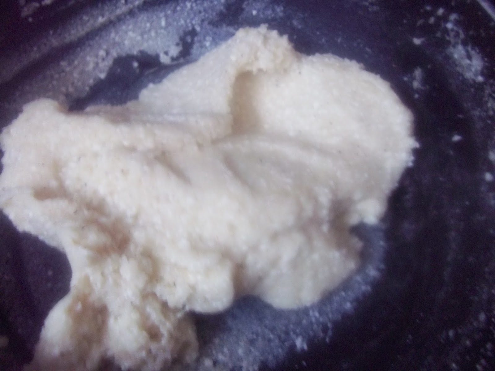 In heavy bottomed pan, add milk, paneer, onion, salt, pepper and suji. Cook on high flame stirring occasionally till all the ingredients combine together and become like a thick dough.